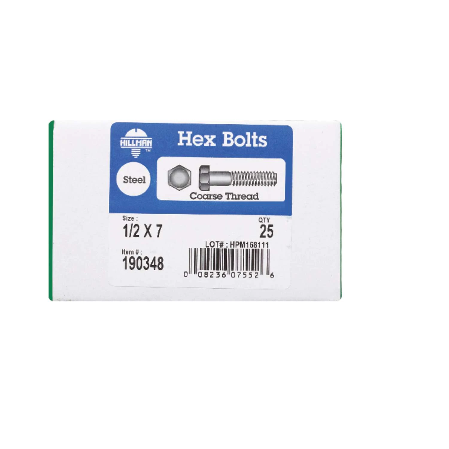 Hillman 1/2 In. D X 7 In. L Zinc Plated Steel Hex Bolt 25 Pk