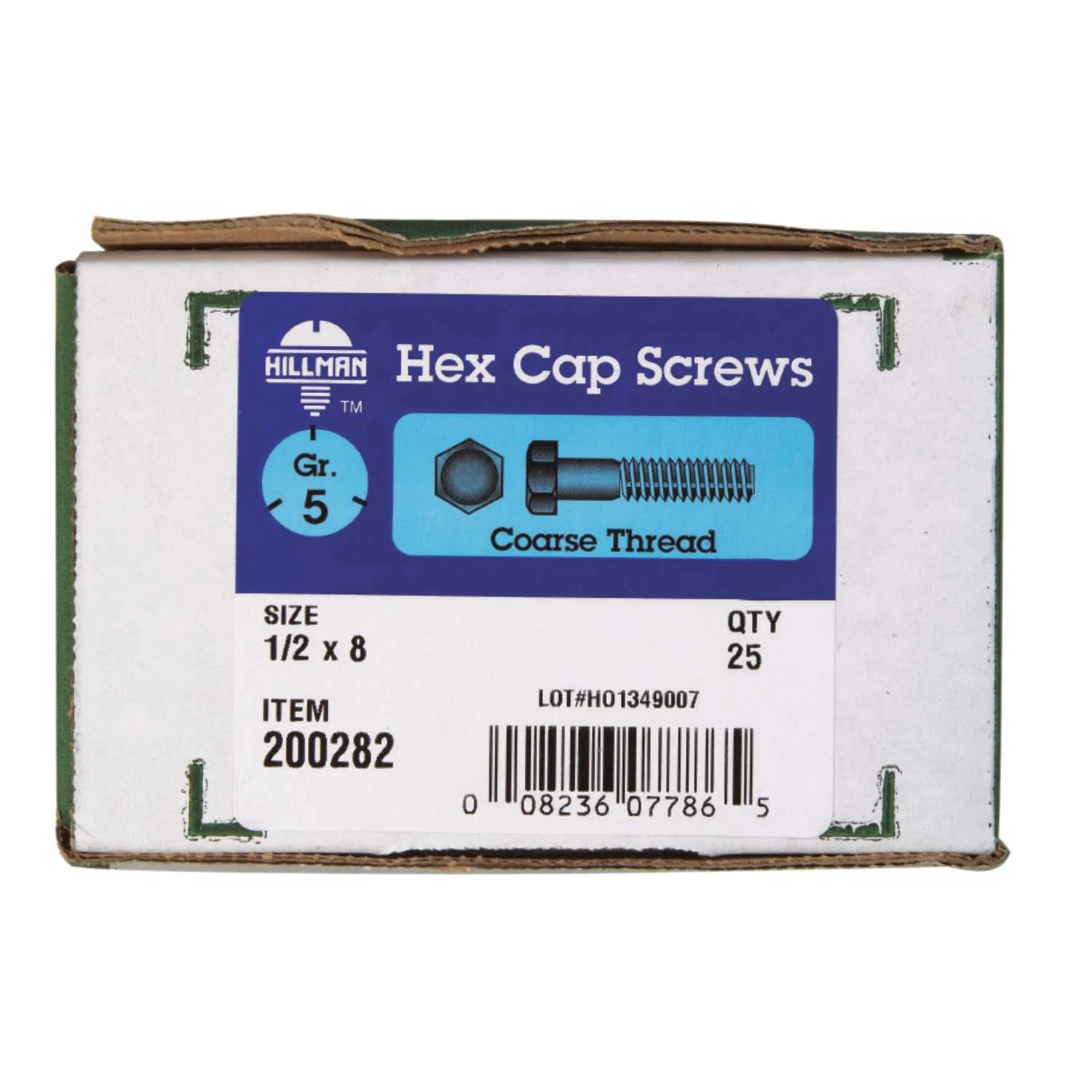Hillman 1/2 In. D X 8 In. L Heat Treated Zinc Steel Hex Head Cap Screw 25 Pk