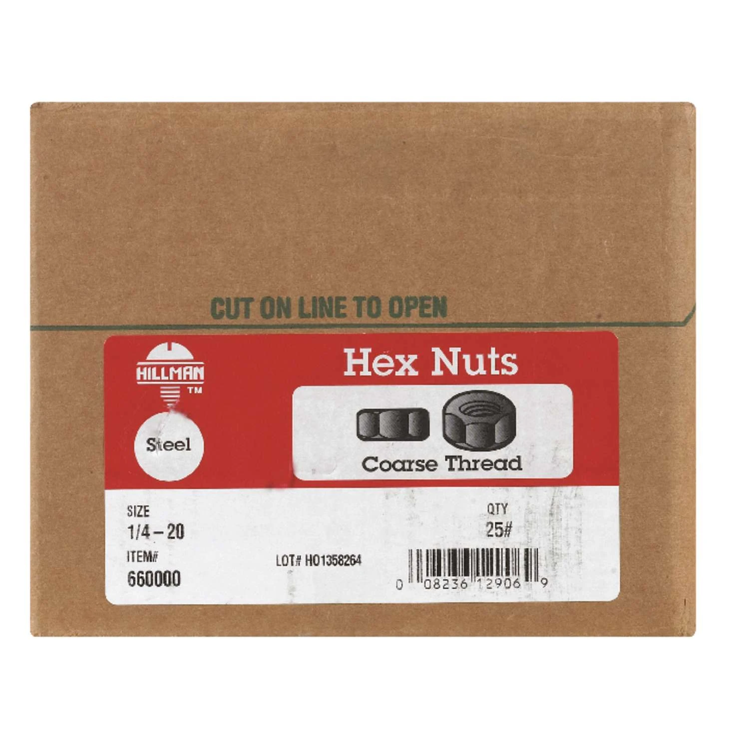 Hillman 1/4 – 20 Zinc-Plated Steel USS Hex Nut 3378 Pk