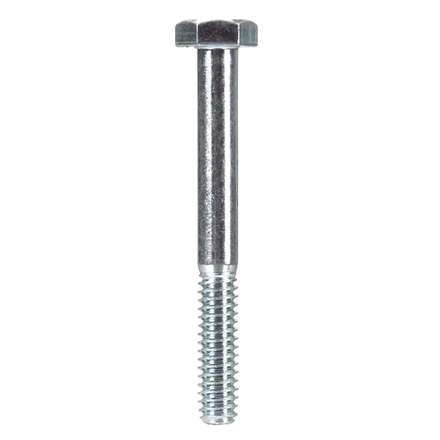 Hex bolts are machine bolts that have been designed to adhere facing materials to prevent shear movement; specifically for use in wood to wood, wood to metal, or metal to metal applications. Zinc, grade 2 hex bolts are recommended for most general uses and are corrosion resistant for typical use. Be sure to pre-drill any holes and to use washers and nuts that are a similar grade and finish. * Machine bolt designed to fasten facing pieces of wood and/or metal Partially threaded shank allows for a stronger grip between objects and less shear movement Grade 2: appropriate for most general use (match with Grade 2 washer)