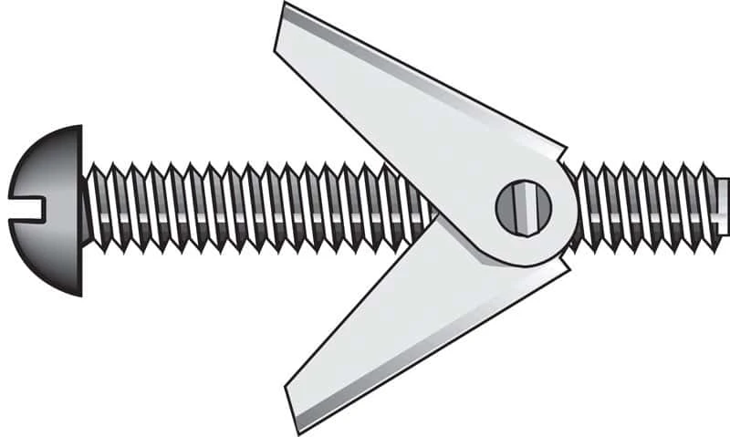 Toggle bolts come with spring-action wings and are intended for anchoring into hollow walls. The wing is designed to spread apart behind the base material upon installation for firm hold in hollow wall applications. The wing disperses the weight of the secured item over a larger area, increasing the weight that can be secured compared to a regular bolt. * 3/16 x 5 inch size Round head 50 pieces per retail package