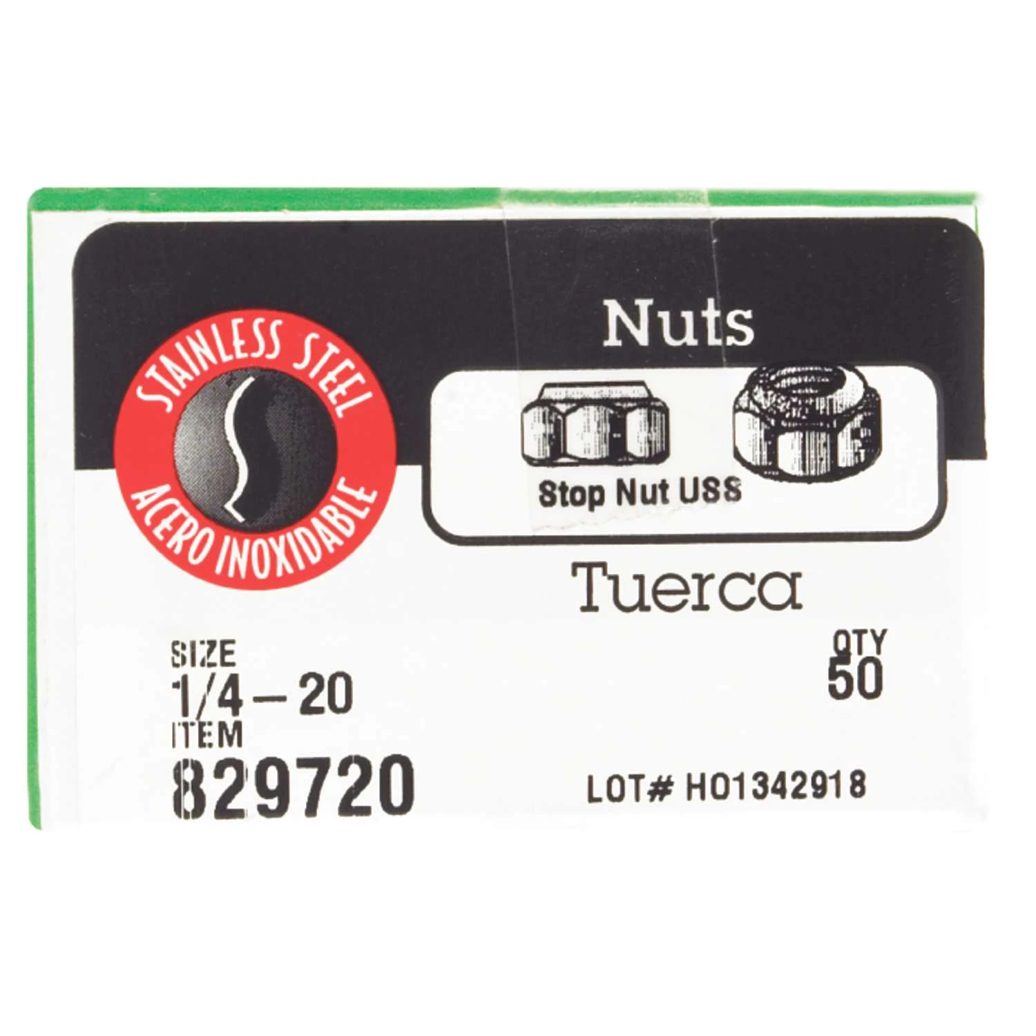 18-8 stainless steel nylon insert stop nuts resist corrosion to help ensure your project is done right. Compressible nylon inserts bind the nuts to eliminate the need for lock washers and prevent loosening due to vibration. The stainless steel finish offers best-in-class corrosion resistance. * 1/4-20 coarse thread size 18-8 stainless steel finish for best-in-class corrosion resistance Nylon insert for added security to keep nut in place