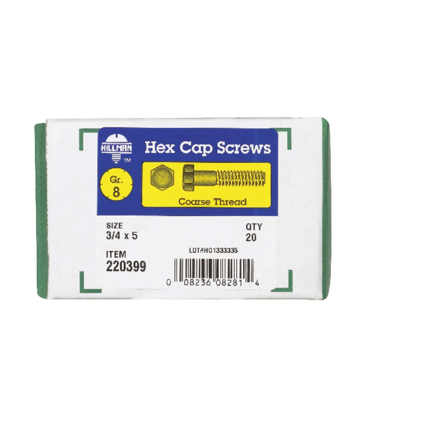 Hillman 3/4 In. D X 5 In. L Heat Treated Steel Hex Head Cap Screw 20 Pk