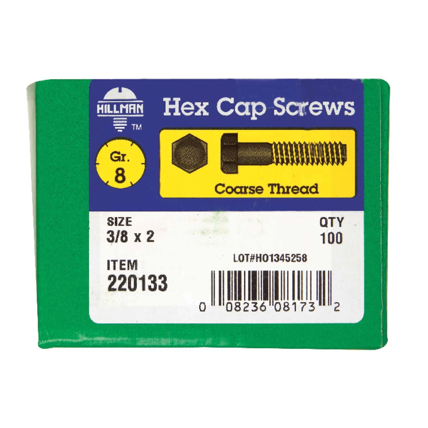Hillman 3/8 In. D X 2 In. L Heat Treated Steel Hex Head Cap Screw 100 Pk
