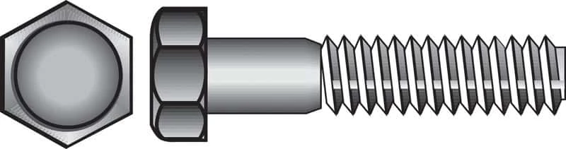 Hex bolts are machine bolts that have been designed to adhere facing materials to prevent shear movement; specifically for use in wood to wood, wood to metal, or metal to metal applications. Zinc, grade 2 hex bolts are recommended for most general uses and are corrosion resistant for typical use. Be sure to pre-drill any holes and to use washers and nuts that are a similar grade and finish. * Machine bolt designed to fasten facing pieces of wood and/or metal Partially threaded shank allows for a stronger grip between objects and less shear movement Grade 2: appropriate for most general use (match with Grade 2 washer)