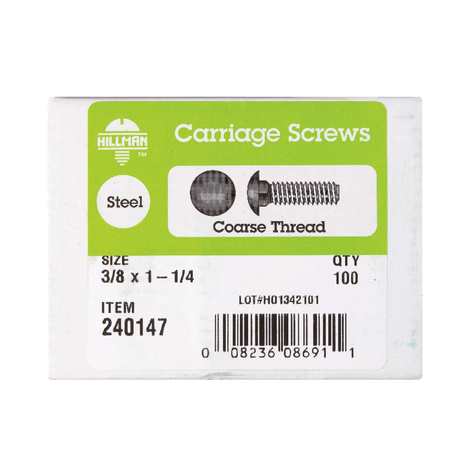 Hillman 3/8 In. X 1-1/4 In. L Zinc-Plated Steel Carriage Bolt 100 Pk