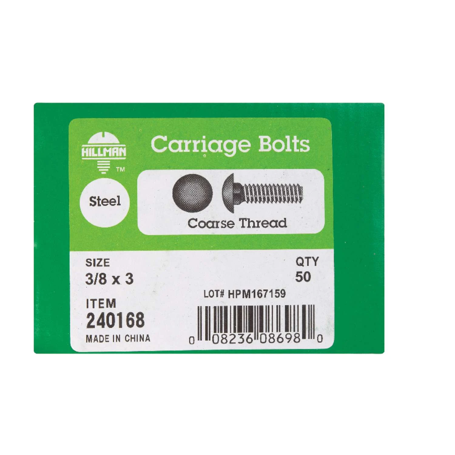 Hillman 3/8 In. X 3 In. L Zinc-Plated Steel Carriage Bolt 50 Pk