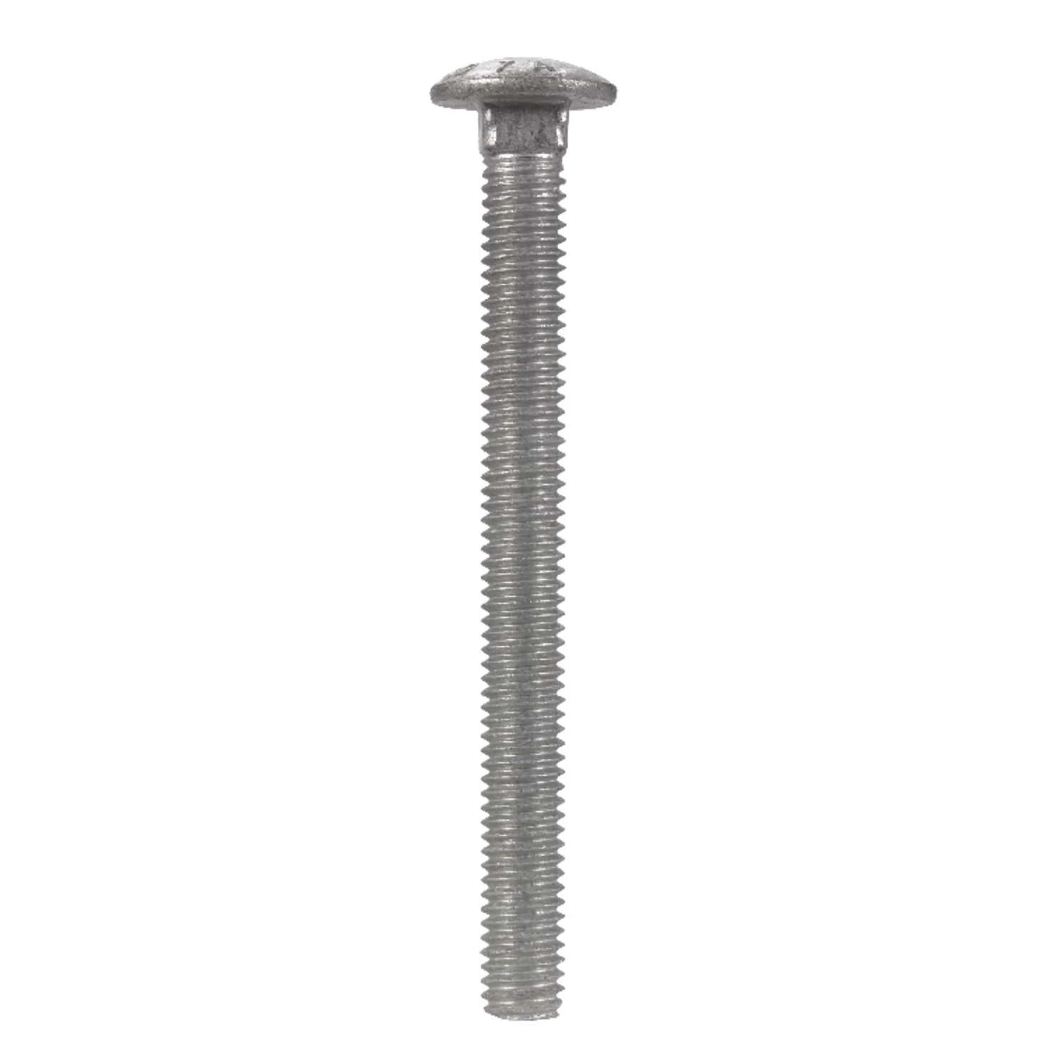 Carriage bolts are designed to fasten a wooden face to either a wood or metal frame. Its flat head is designed to eliminate the need for a washer and provide a semi-flush finish to applications. The square underside of the head is self-locking to eliminate spinning and the need for a driving tool. The galvanized finish provides optimal rust prevention but can be chalky in appearance. * Galvanized finish is perfect for rust prevention 1 C-Pak per sellable unit 50 pieces per retail package