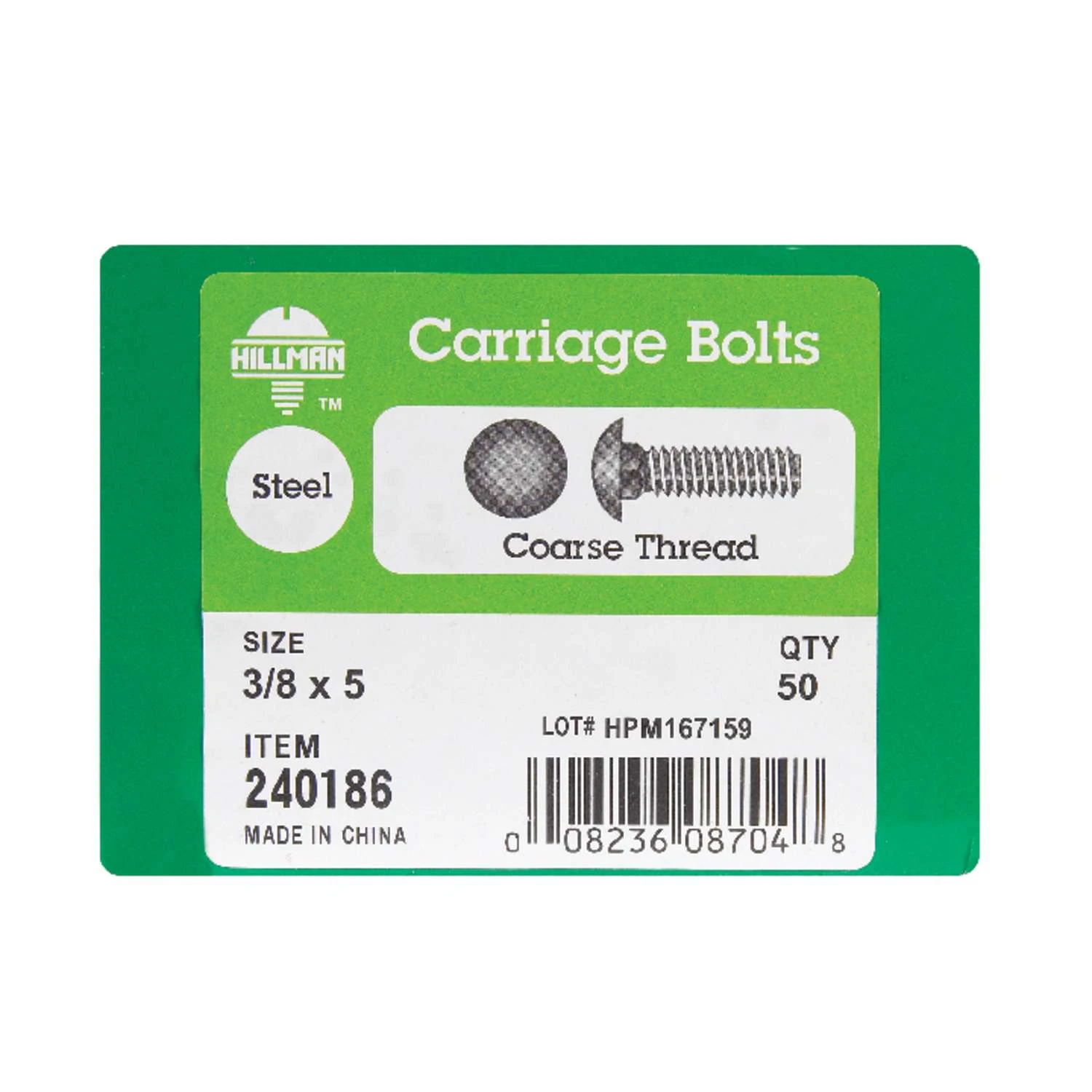 Hillman 3/8 In. X 5 In. L Zinc-Plated Steel Carriage Bolt 50 Pk