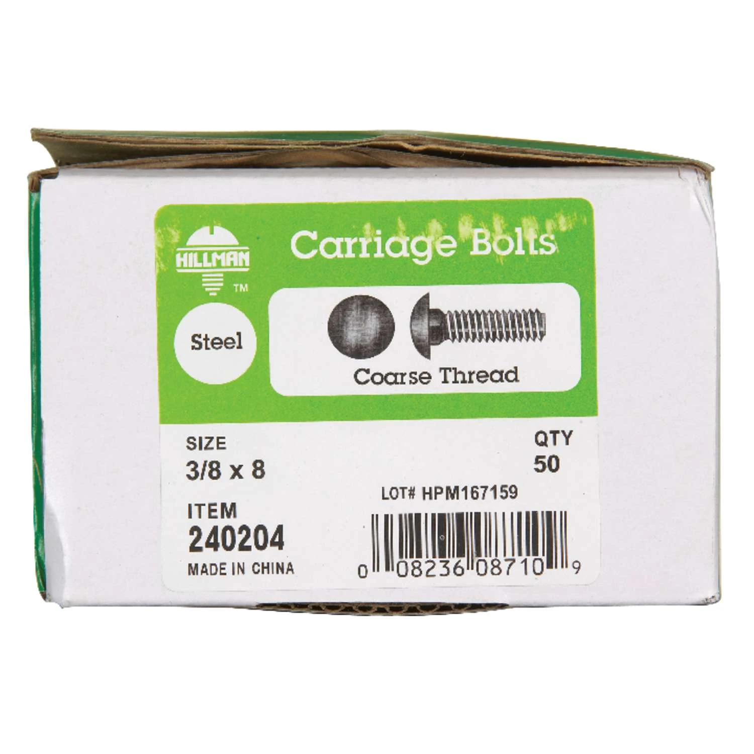 Hillman 3/8 In. X 8 In. L Zinc-Plated Steel Carriage Bolt 50 Pk