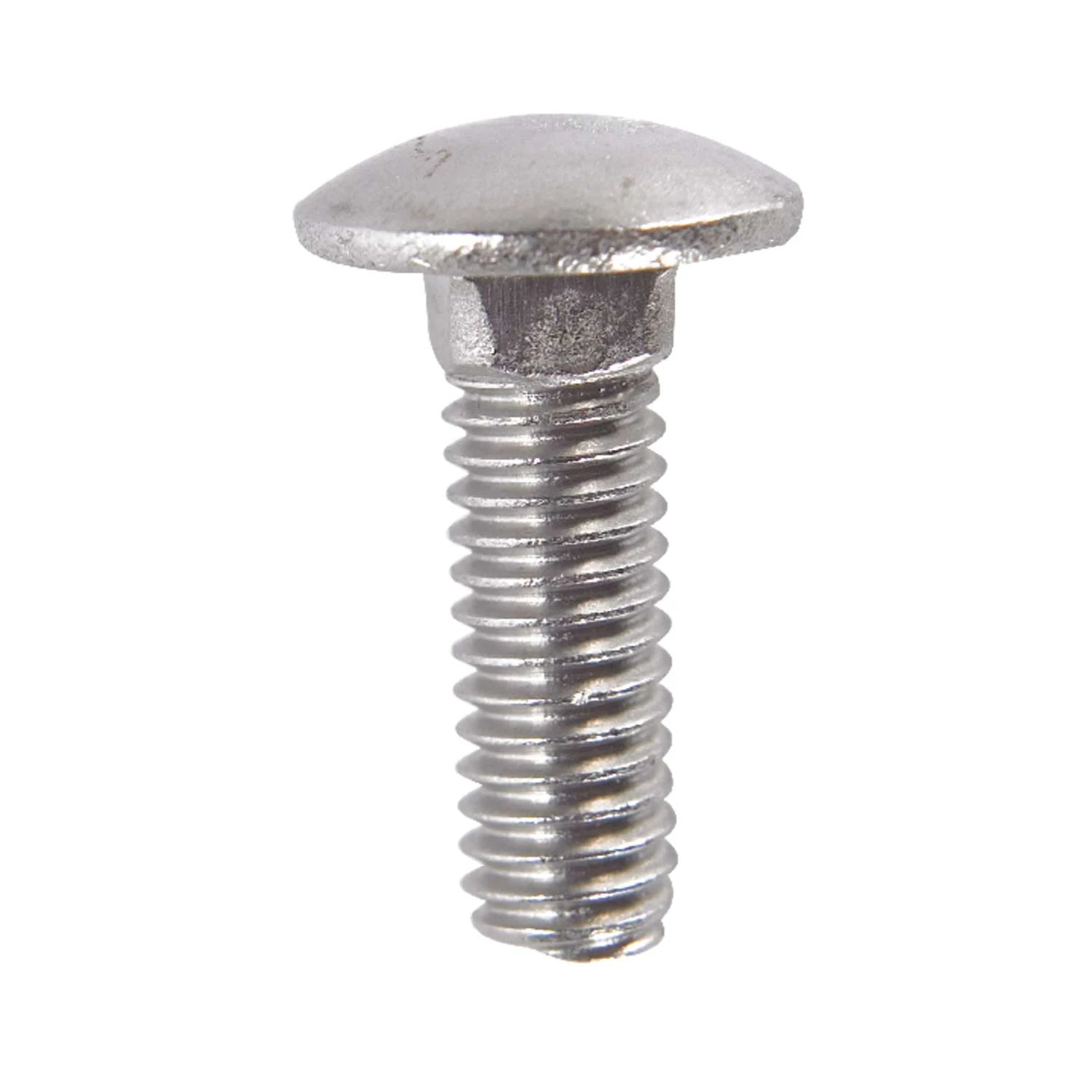 Carriage bolts are designed to fasten a wooden face to either a wood or metal frame. Its flat head is designed to eliminate the need for a washer and provide a semi-flush finish to applications. The square underside of the head is self-locking to eliminate spinning and the need for a driving tool. Stainless steel finish provides superior rust prevention, terrific for all outdoor applications. * Stainless steel provided superior rust prevention and bright finish 1 C-Pak per sellable unit 50 pieces per retail package