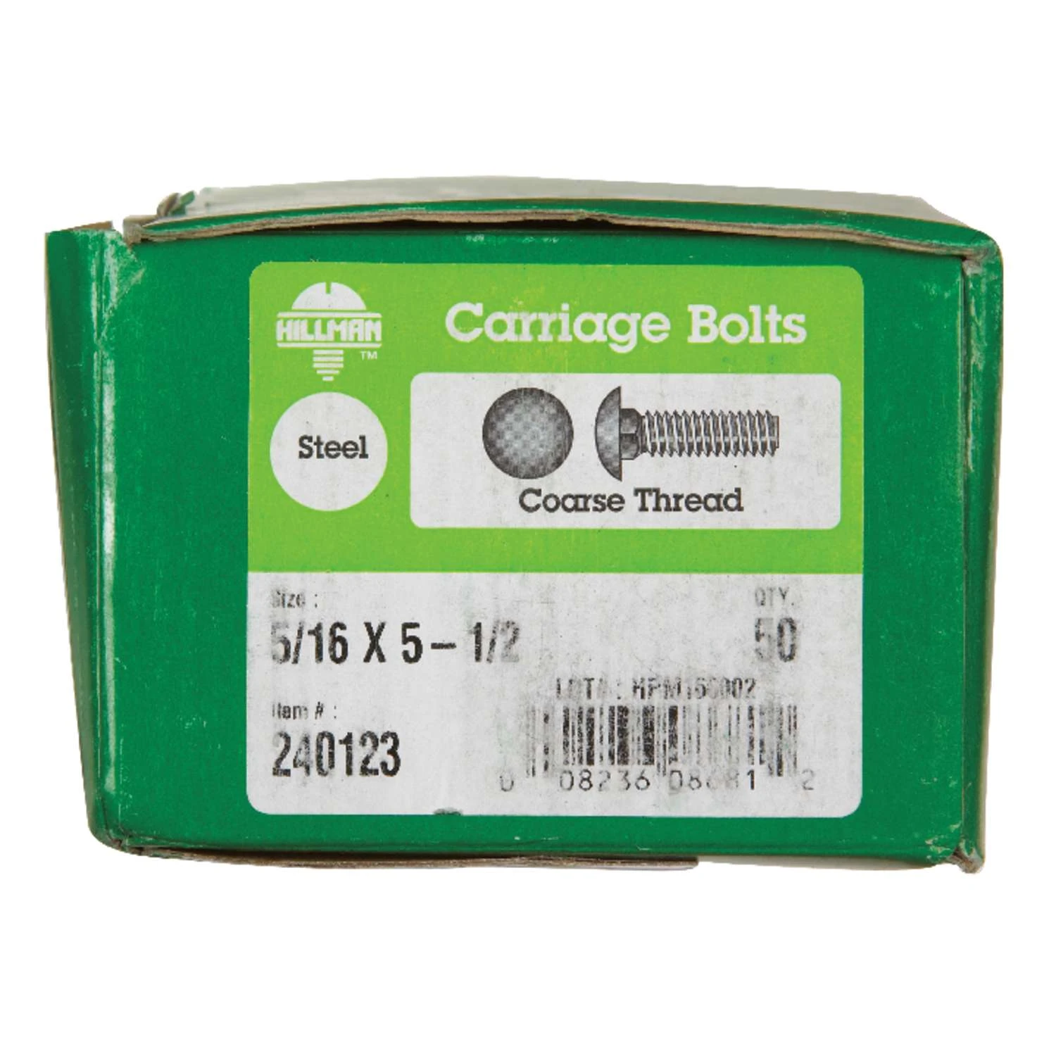 Hillman 5/16 In. X 5-1/2 In. L Zinc-Plated Steel Carriage Bolt 50 Pk