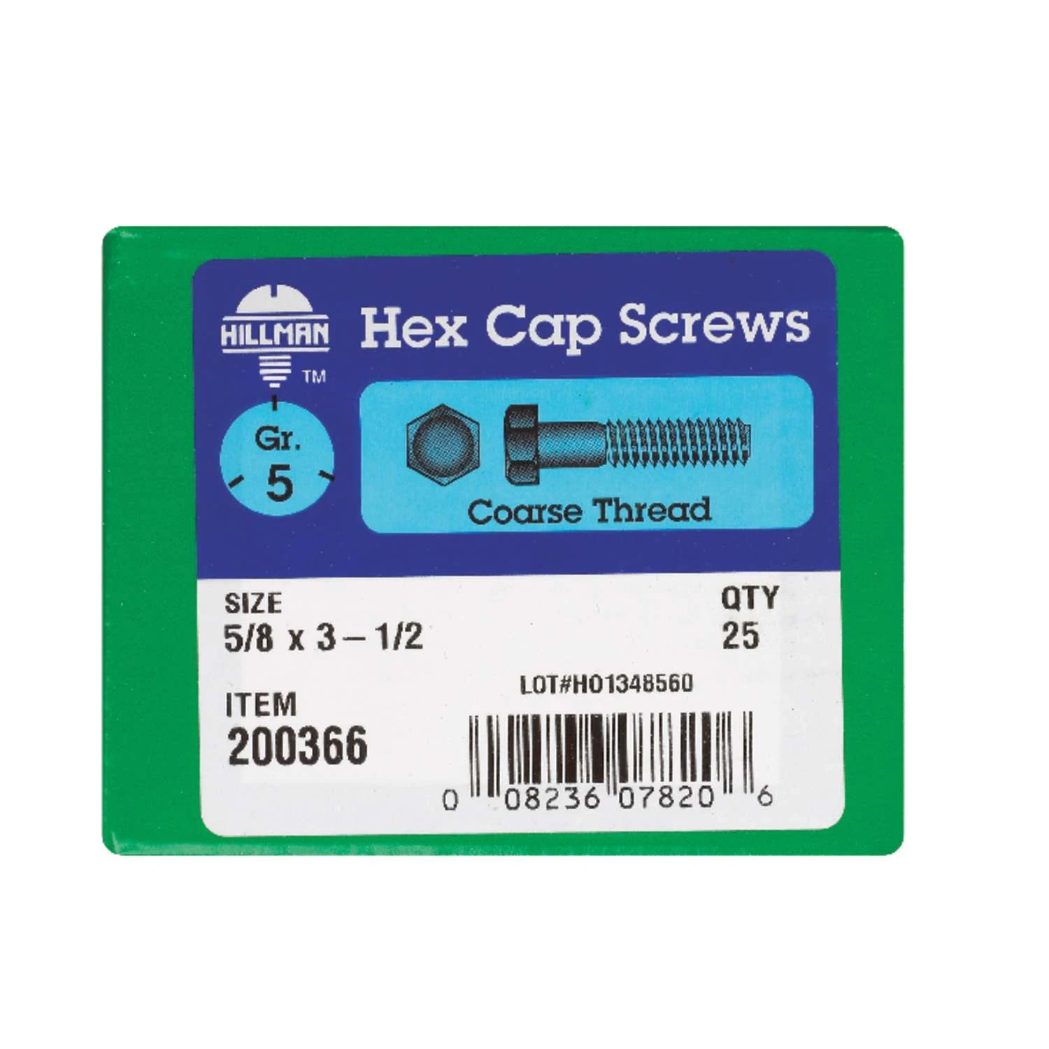 Hillman 5/8 In. D X 3-1/2 In. L Heat Treated Zinc Steel Hex Head Cap Screw 25 Pk
