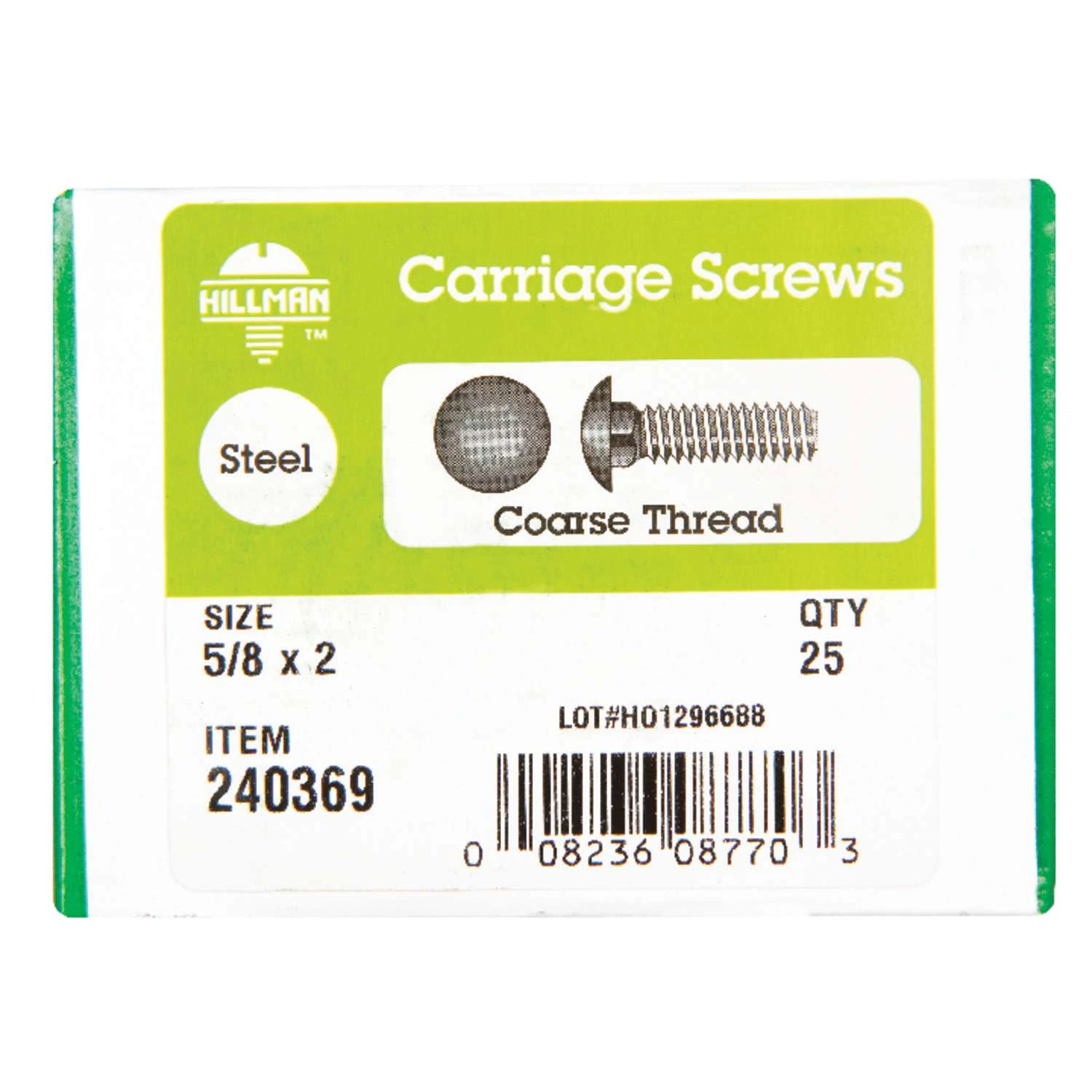 Hillman 5/8 In. X 2 In. L Zinc-Plated Steel Carriage Bolt 25 Pk