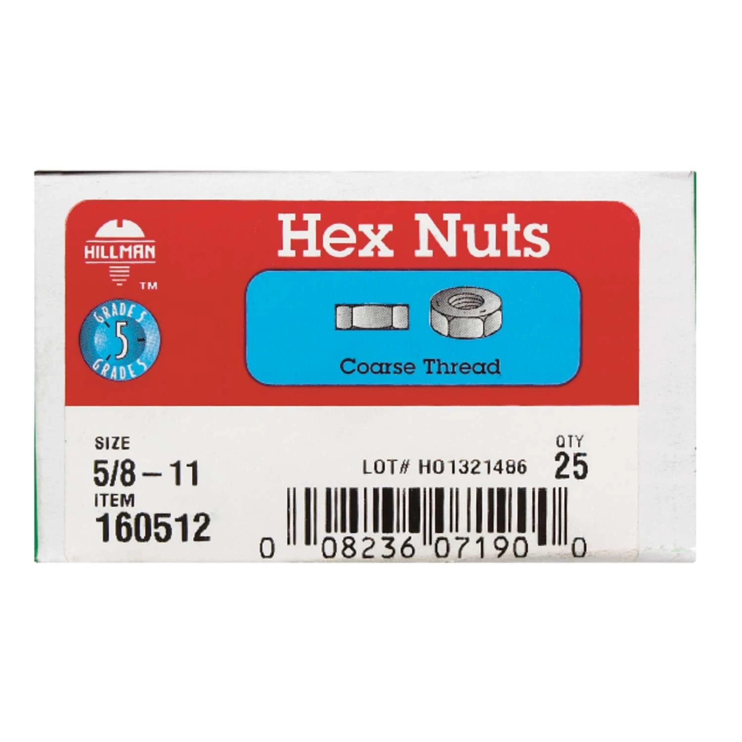 Hillman 5/8 In. Zinc-Plated Steel USS Hex Nut 25 Pk