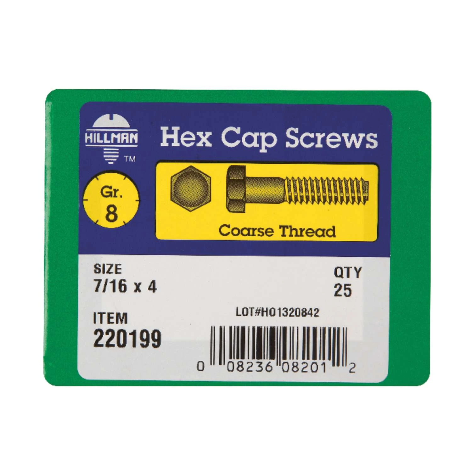 Hillman 7/16 In. D X 4 In. L Heat Treated Steel Hex Head Cap Screw 25 Pk