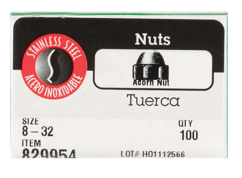 Stainless steel acorn cap nuts are hex nuts with a partially internally-threaded dome shape. The dome offers protection of exposed screw threads and a decorative appearance as a finishing fastener. The cap nut also protects the user from injury by covering exposed threads. Parts have a stainless steel finish for best-in-class corrosion resistance. * 8-32 coarse thread size Stainless steel finish for best-in-class corrosion resistance 100 pieces per retail package