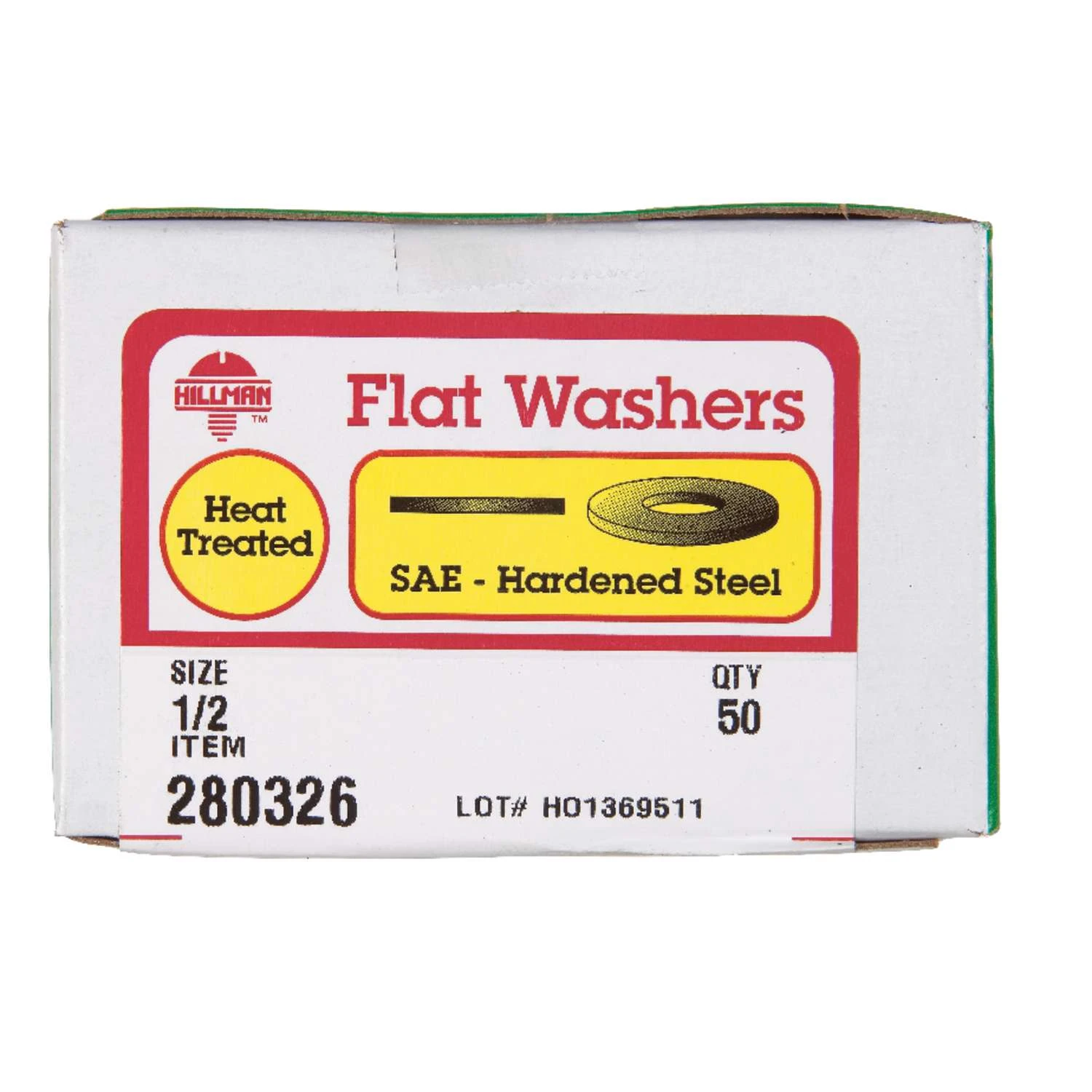 Hillman Yellow Dichromate Steel 1/2 In. SAE Flat Washer 50 Pk